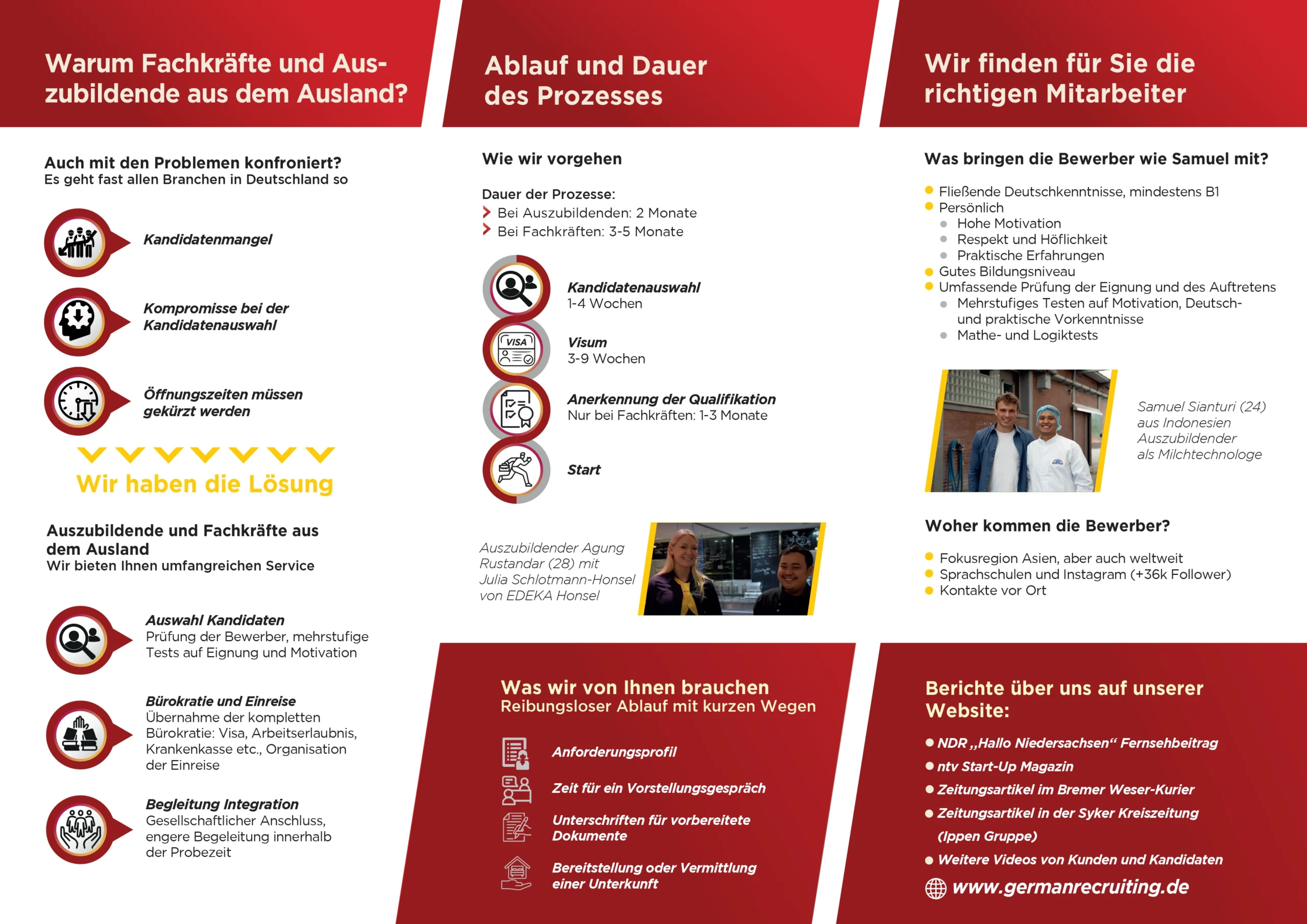 Unser Team hat sich darauf spezialisiert, das Ungleichgewicht zwischen unbesetzten Ausbildungsplätzen und dem Überangebot an qualifizierten Menschen im Ausland auszugleichen.